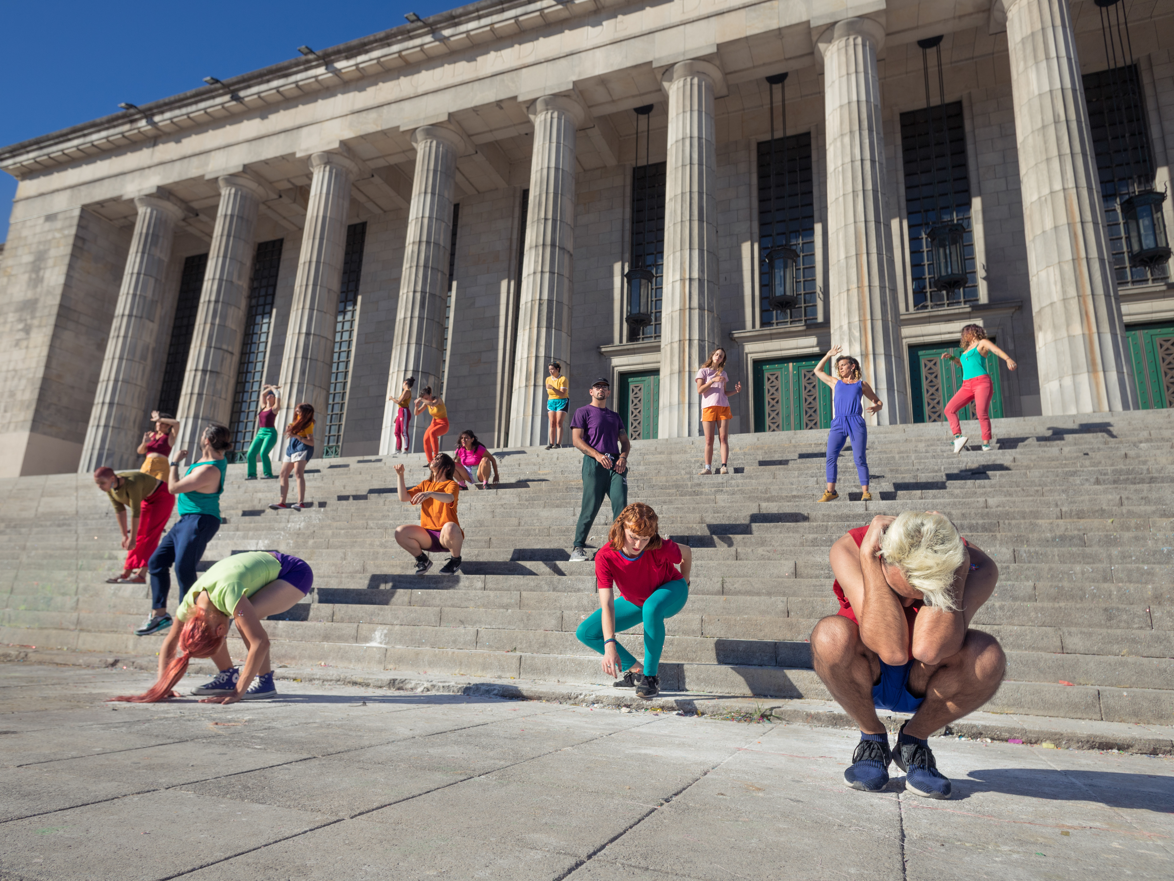 Intervención de performers urbanos guiados por Joel Drut