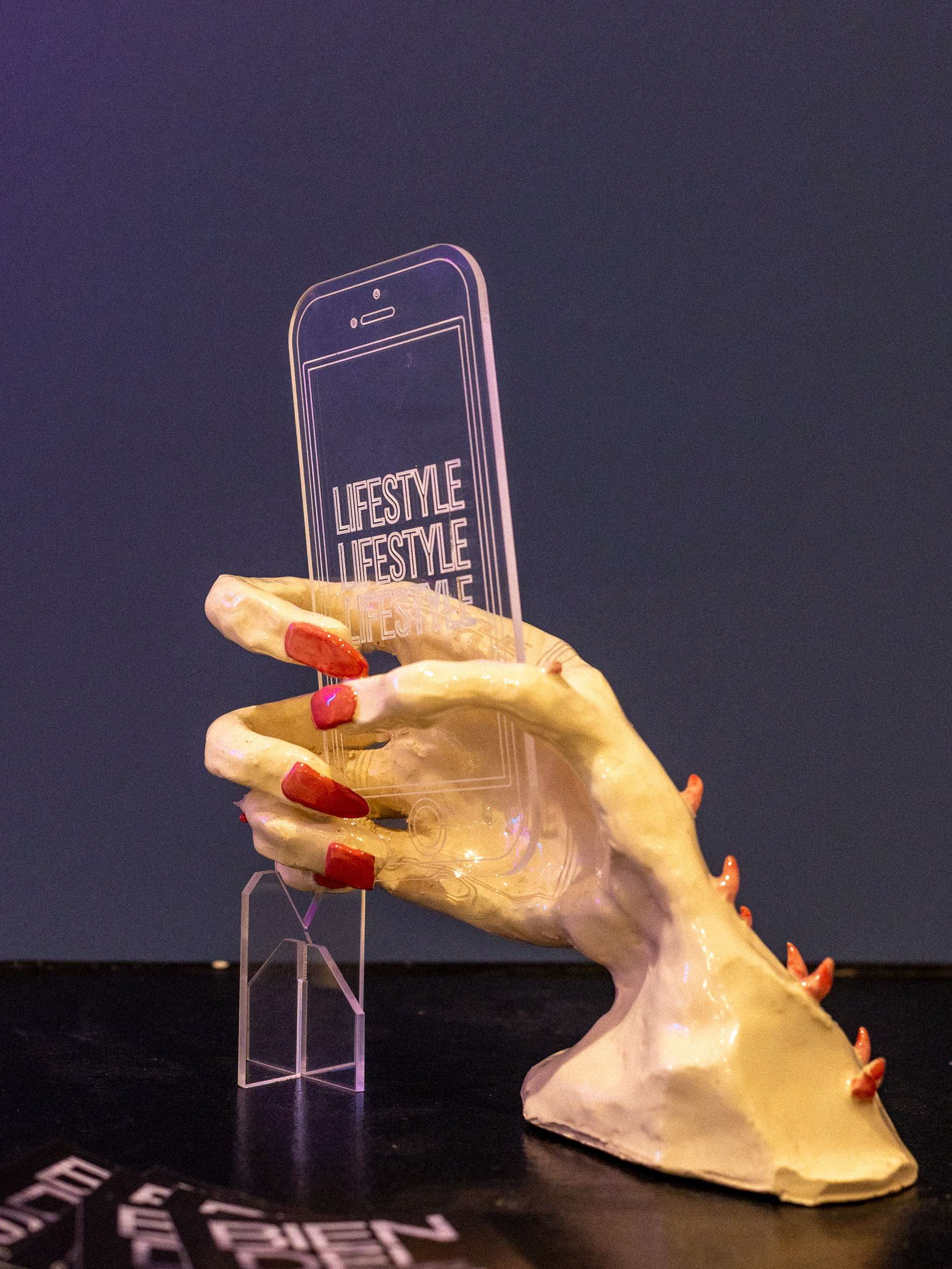 Lifestyle es un proyecto en movimiento, que se despliega en distintos formatos —fotografía, gigantografía, video, escultura— y se reconfigura en cada presentación. Una radiografía incómoda del yo que mostramos y del que escondemos para sobrevivir en el feed.
