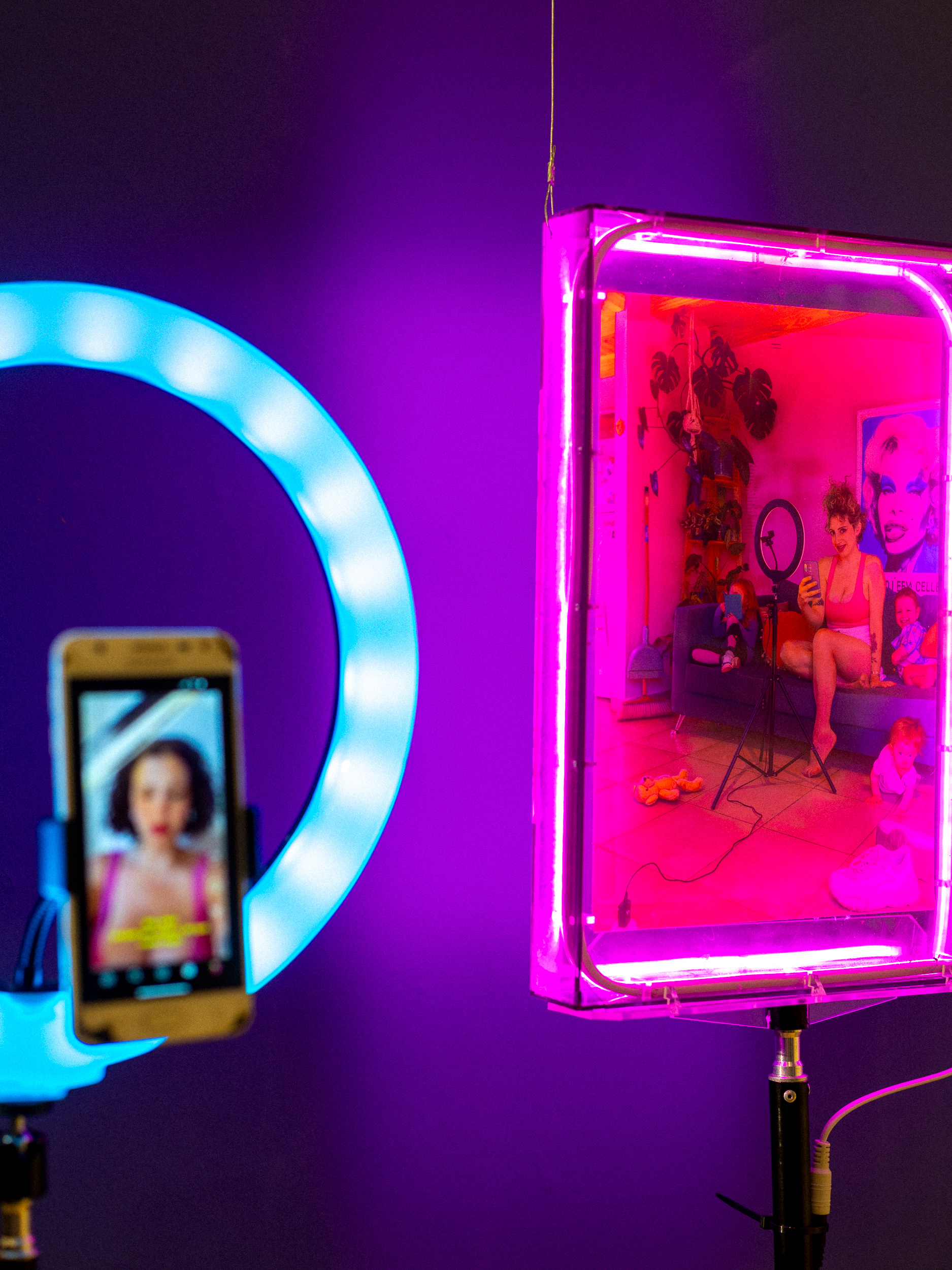 El proyecto trabaja sobre la producción y el consumo de imágenes en redes sociales y las formas en que esos lenguajes construyen una idea de “verdad”. Me interesa ese territorio donde intimidad y exposición se mezclan, donde lo que se muestra vale más que lo que se vive, y donde imaginamos a lxs otrxs a partir de una vidriera digital permanentemente activa.